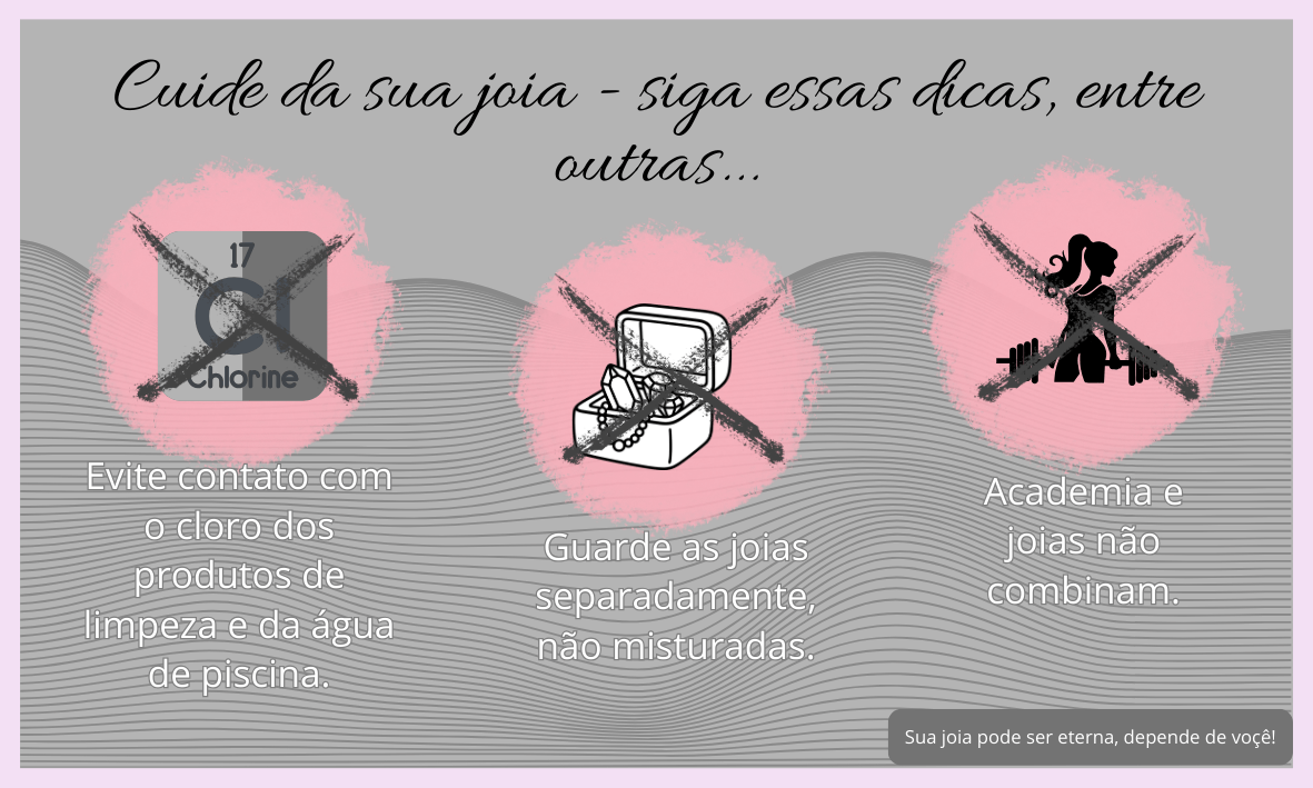 Para que sua joia seja eterna alguns cuidados são necessários: